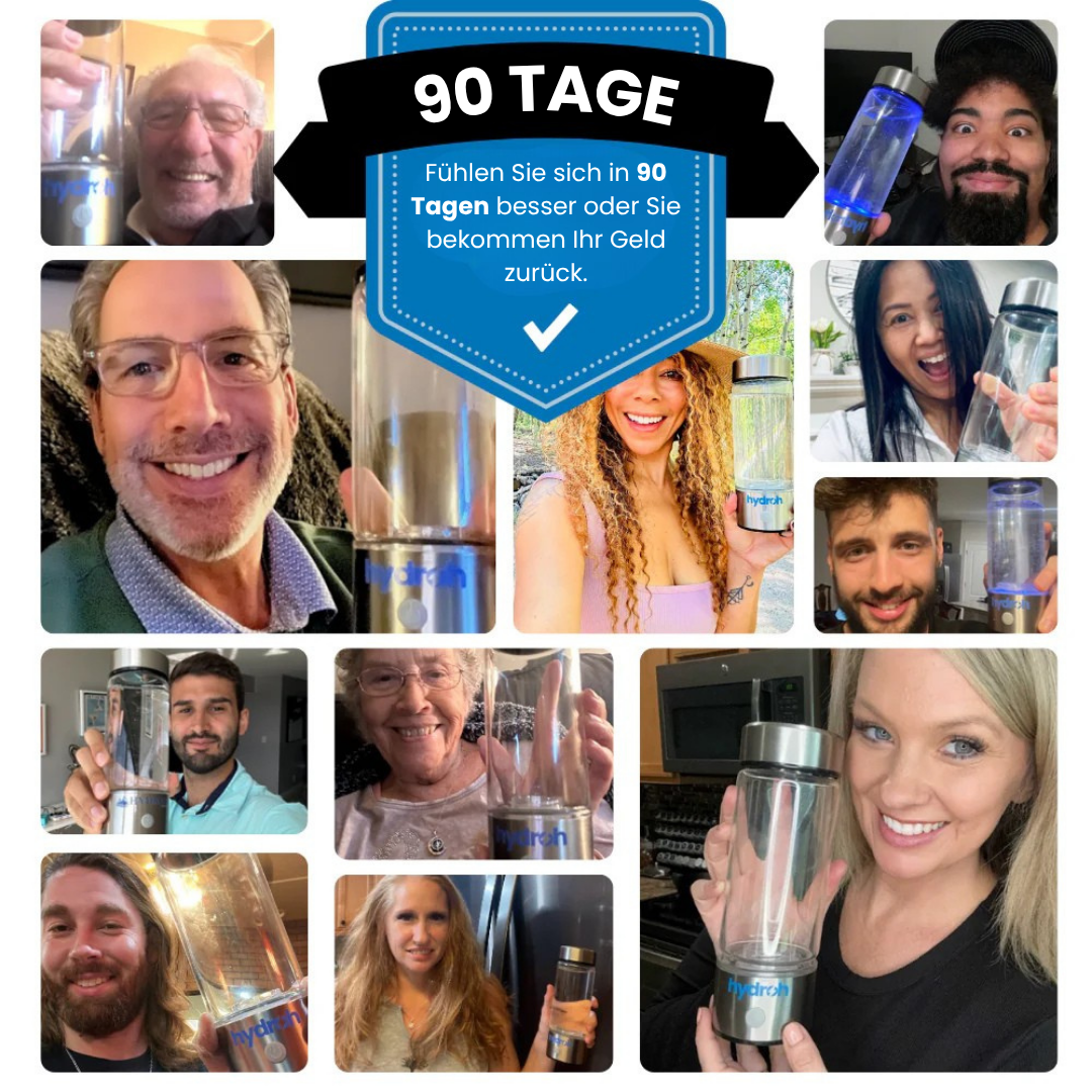 Wir bieten dir eine 90-Tage-Testphase mit jeder Hydroh-Flasche.